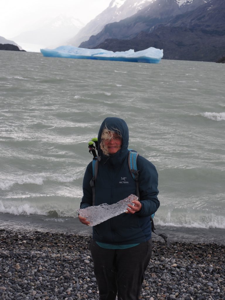 Wir haben dann nur eine kleine dreistündige Wanderung um eine Insel rum gemacht mit tollen Blicken auf blaue abgebrochene Stücke vom Gletschereis. Das Eis ist übrings so blau, weil dickere Eisstücke alle Farben außer Blau absorbieren, deshalb sehen wir nur das Blau. Die Wanderung war sehr schön, aber auch sehr anstrengend, man läuft gegen den Wind die ganze Zeit wie gegen eine Wand an. Die Bootsfahrt haben wir nun für morgen früh gebucht, mal sehen, ob sie stattfinden kann. Heute Abend sind wir mal früh häuslich.
