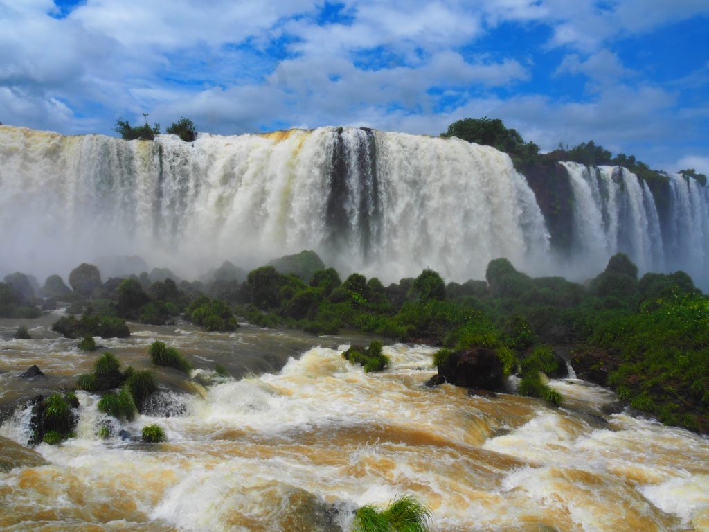 Wie dem auch sei, Fakt ist: die Wasserfälle von Iguazu sind die größten der Welt. In einer Gesamtbreite von 2700 m stürzen sich die Wassermassen des Flusses mit durchschnittlich 1700 m³ in der Minute, in Spitzenzeiten mit bis zu 7000 m³, in etwas 20 größeren und 255 kleineren Einzelfällen hinab. Dabei fallen sie zwischen 57 und 72 m in zwei Stufen hinab und sind durch kleinere und größere Inseln voneinander getrennt.