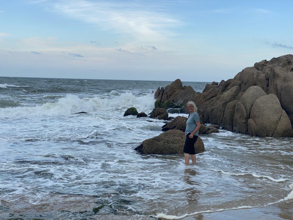 Heute war es an unserem Platz im Schatten unter den Palmen und mit den zeterenden Papageien so schön, dass wir bis mittags gefrühstückt und gelesen haben. Anschließend sind wir ausgiebig am Strand gewesen und haben lange gebadet. Der Atlantik muss mindestens 25 Grad haben, so locker wie wir da reingehen. Und außerdem tolle hohe Wellen.