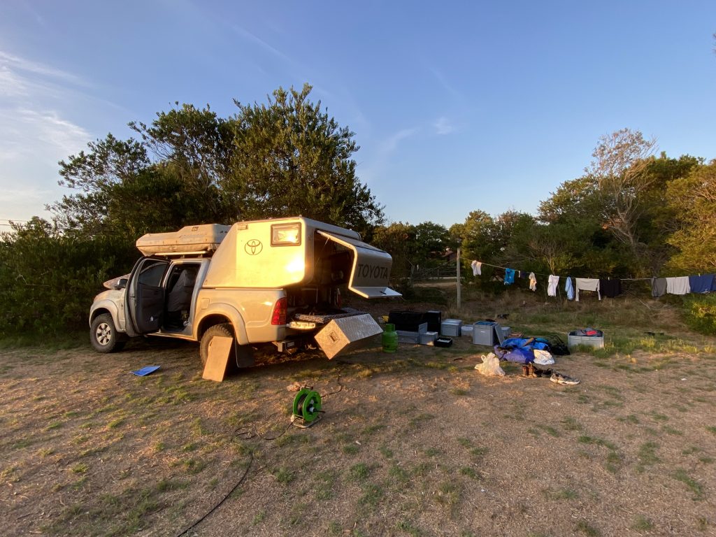 Nach einem kleinen Imbiss fuhren wir noch 200 km durch Uruguay, immer an der Küste entlang und kamen gegen Abend im Paraiso Suizo, unserer ersten Station mit Chingi Ende Oktober, an. Dort wuschen wir erstmal drei Maschinen Wäsche und luden alles aus, um einerseits Chingi so zu packen, dass der Zoll zufrieden ist und andererseits unsere Sachen für die restliche Zeit zu packen. Das war gar nicht so einfach, zumal es selbst abends immer noch unglaublich warm war. Sehr wehmütig gingen wir schlafen, weil dies unsere letzte Nacht im Chingi ist.
