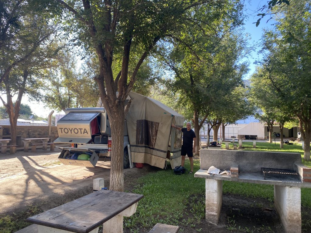 Wir fuhren dann wieder in die Stadt zum Mechaniker und dieser schloß Chingi an irgendeine Anlage an. Es fehlte wohl irgendein Kühlgas. Das einzufüllen würde mindenstens eine Stunde dauern. Daraufhin fragten wir, ob es irgendwo etwas zu essen gebe, da wir ganz schön hungrig waren. Und jetzt wird es wieder typisch argentinisch: Der Mechaniker (der nebenbei außer unserem Auto parallel noch einen Lastwagen reparierte) lud uns in sein Auto und fuhr uns in die Stadt zu seinem Lieblingsrestaurant, in einer Stunde würde er uns wieder abholen. Tatsächlich war es auch ausgesprochen lecker. Nach 1 1/2 Stunden fiel uns auf, dass wir nicht nur keine Telefonnummer oder irgendwas von dem Mechaniker hatten, sondern unser Chingi mit allen Sachen inklusive unserer Pässe und aller sonstiger Papiere auf der Straße vor der Werkstatt stand. Wir üerlegten kurz, ob wir uns Sorgen machen müssen, aber entschieden dann, lieber argentinisch entspannt zu bleiben. Und tatsächlich, 20 Minuten später fuhr der Mechaniker vor und brachte uns zu unserem reparierten Chingi, der jetzt besser kühlt als jemals zuvor.