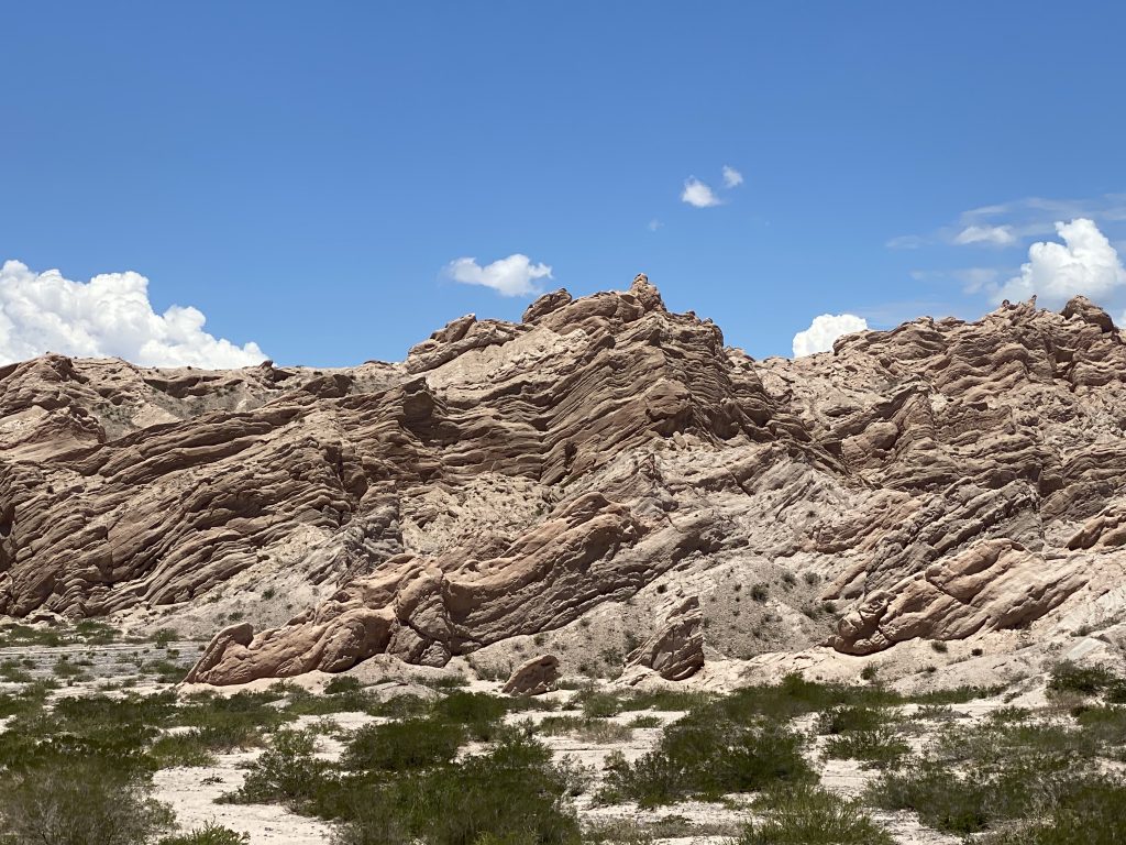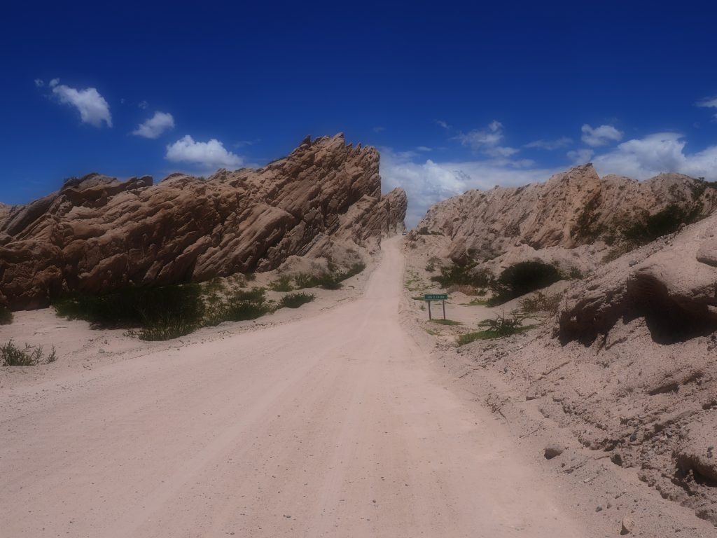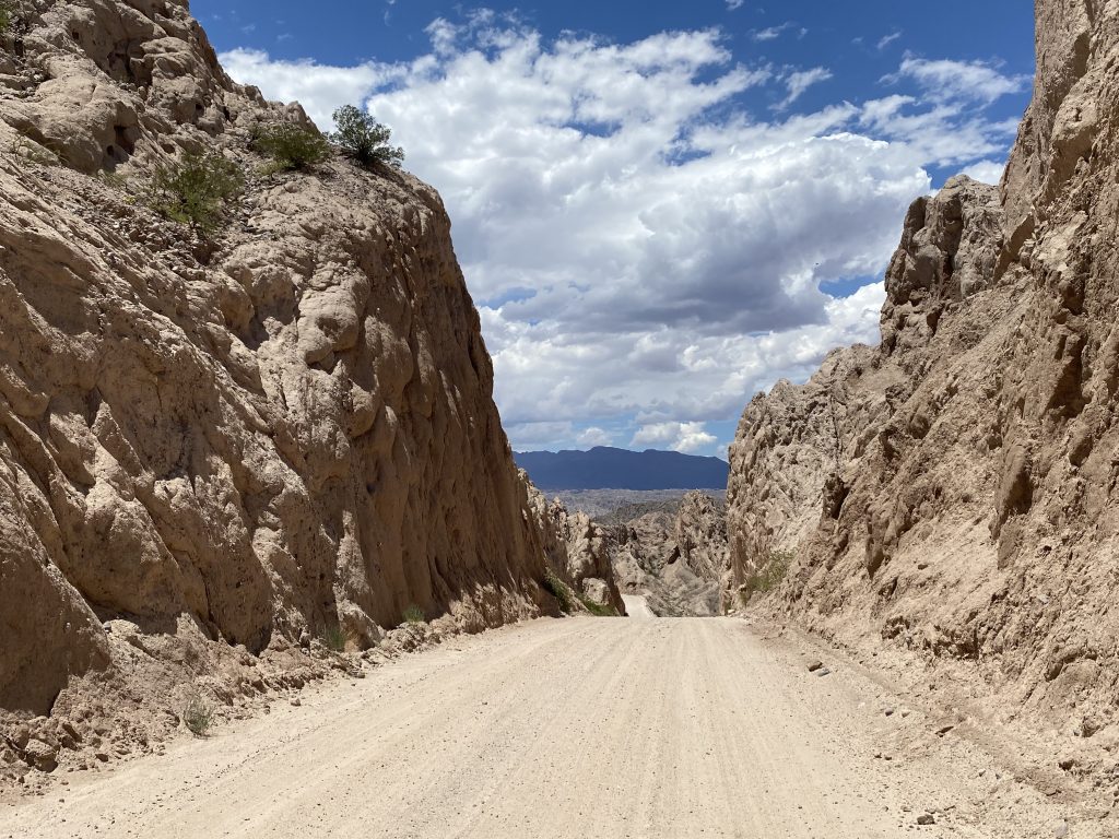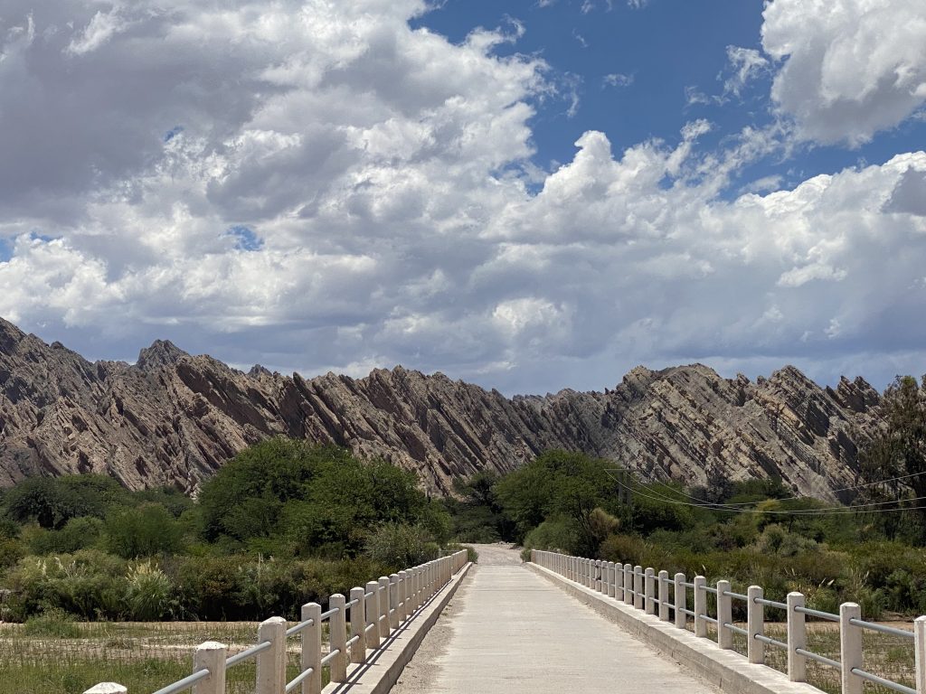 Wir fuhren weiter auf der Ruta 40, die Landschaft wurde immer spektakulärer, die Straße allerdings dafür immer schlechter. An einer Stelle war die Straße so eingebrochen, dass wir irgendwie einen anderen Weg suchen mussten. Außerdem ging unsere Klimaanlage, die schon länger geschwächelt hatte, inzwischen überhaupt nicht mehr. Bei 38 Grad im Schatten schon ein bisschen doof…Trotzdem genossen wir die Fahrt sehr, nach jeder Kurve tauchten andere bunte Berge, grüne Flusstäler oder interessante Felsformationen auf.