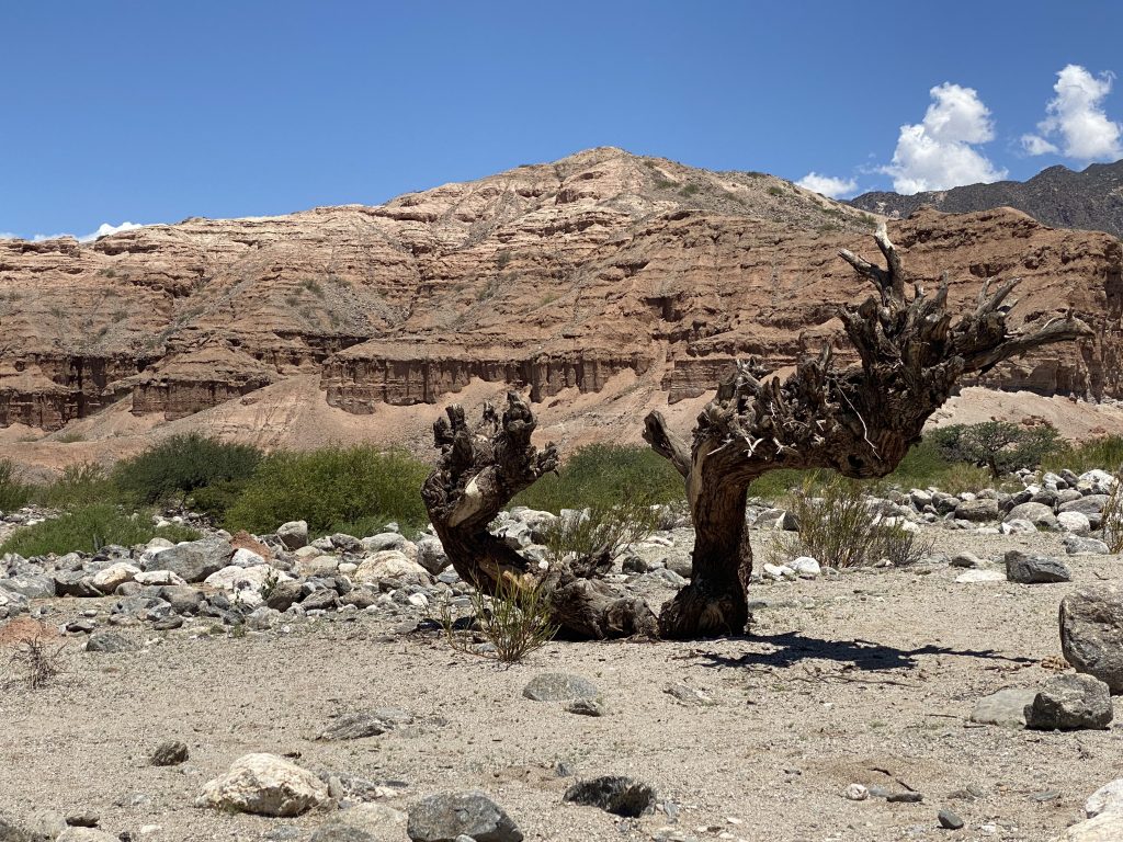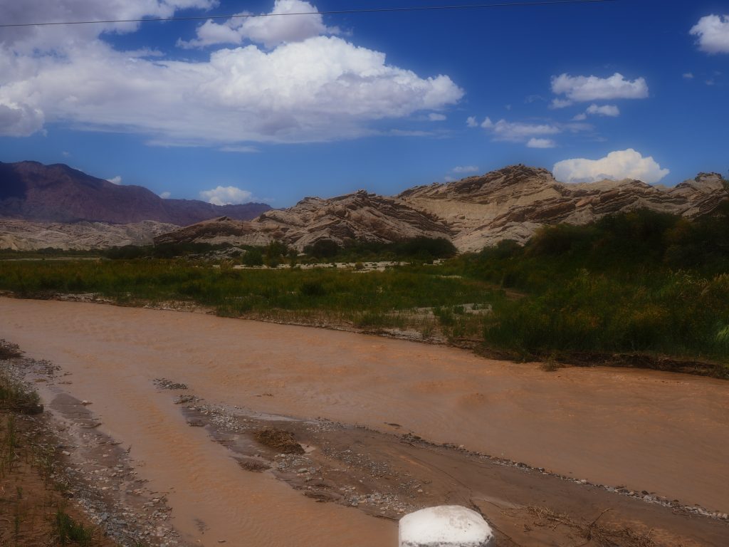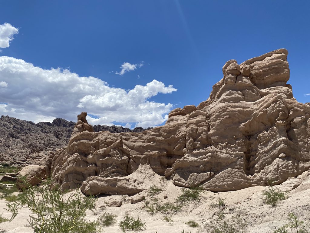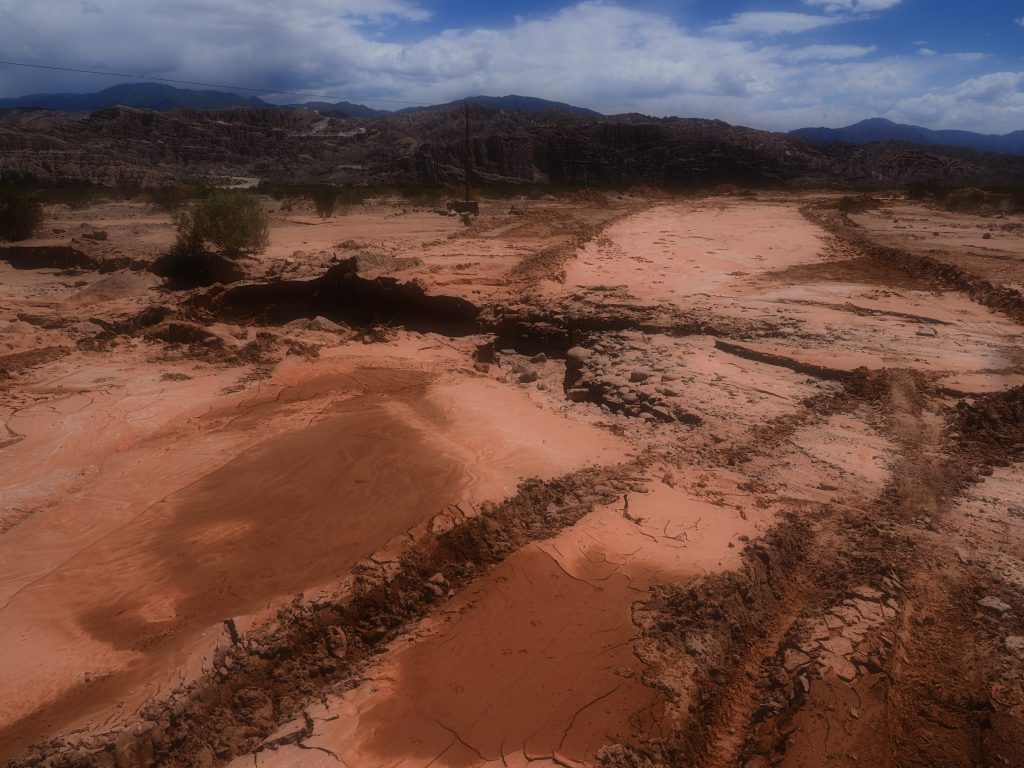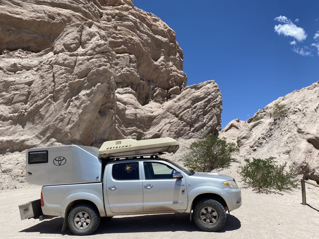 Wir fuhren weiter auf der Ruta 40, die Landschaft wurde immer spektakulärer, die Straße allerdings dafür immer schlechter. An einer Stelle war die Straße so eingebrochen, dass wir irgendwie einen anderen Weg suchen mussten. Außerdem ging unsere Klimaanlage, die schon länger geschwächelt hatte, inzwischen überhaupt nicht mehr. Bei 38 Grad im Schatten schon ein bisschen doof…Trotzdem genossen wir die Fahrt sehr, nach jeder Kurve tauchten andere bunte Berge, grüne Flusstäler oder interessante Felsformationen auf.