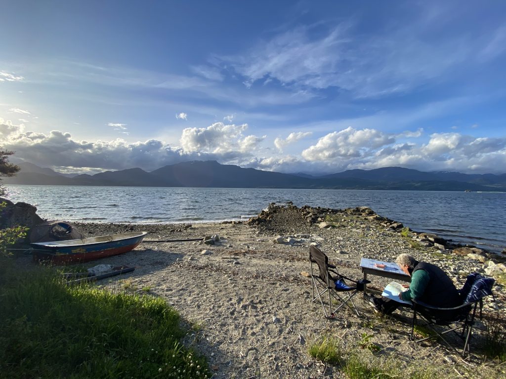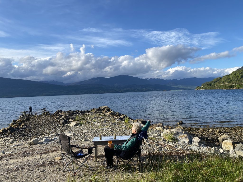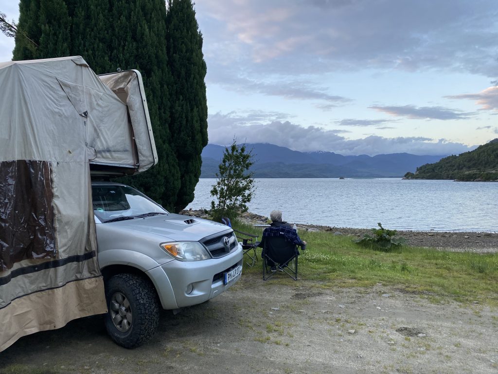 Wir fanden einen sehr schönen Campingplatz direkt am Fjord, wo wir unser Zelt nah am Wasser aufschlugen und schön am Strand in der Sonne sitzen konnten.
