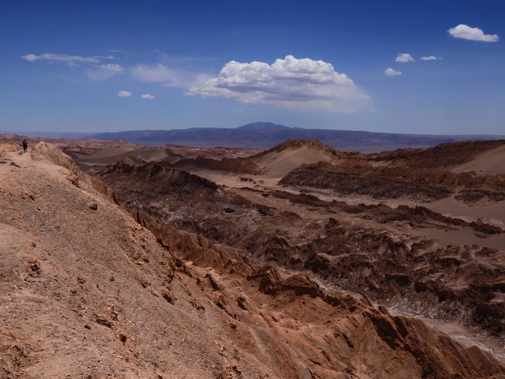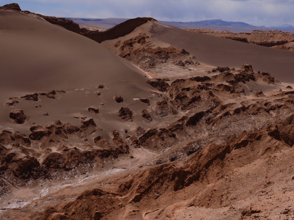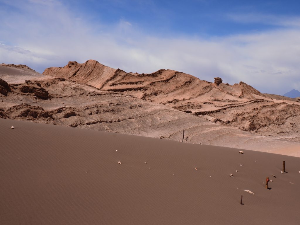 Für heute ist es uns gelungen, eine Buchung für das Valle de la Luna zu bekommen. Dies ist ein besonders hübsches Tal mit verschiedenen Dünen und Felsformationen. Wie bereits gestern geschrieben, ist die Besonderheit hier, dass letztlich alle um San Pedro de Atacama gelegenen Sehenswürdigkeiten unter der Verwaltung eines jeweils in der Nähe gelegenen Dorfes stehen, das von Menschen bewohnt ist, deren Vorfahren teilweise schon seit präkolumbianischen Zeiten auf diesem Kontinent leben ((:-)), tschaka, oder ?). Dies hat den lobenswerten Hintergrund, dass alle Einwohner am Tourismus mitverdienen sollen, hat allerdings auch zur Folge, dass man nicht über eine Website alle möglichen Eintritte “buchen“ kann, sondern es für die jeweilige Sehenswürdigkeit über das jeweilige Dorf eine eigene Website gibt. Da auch hier die Buchung nur über das Internet gehen und nicht zum Beispiel eine Eintrittskarte am Eingang gelöst werden kann, ist es ähnlich schwierig wie über die Nationalparkbehörde ( die mit dem Biber, s.o.), da auch hier die Angabe z.B. der chilenischen Sozialversicherungsnummer als Buchungsvoraussetzung nicht fehlen darf. Wenn etwas die Welt eint, dann die Bürokratie, dies sogar bei vorgenannten Einwohnern.