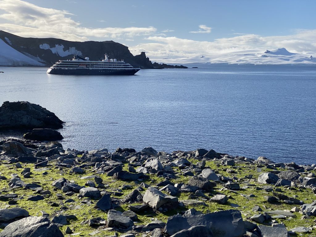 Heute morgen war die See deutlich ruhiger und es war viel kälter. Viel schneller als geplant haben wir die Drakepassage hinter uns gelassen. Das lag daran, dass zum einen der Kapitän Vollgas gegeben hat, um einem aufkommenden Sturm zu entgehen (argghh) und wir außerdem dadurch noch starken Rückenwind hatten. So landeten wir statt morgen früh schon heute mittags auf den South-Shetland-Inseln in der Halfmoon-Bay an.