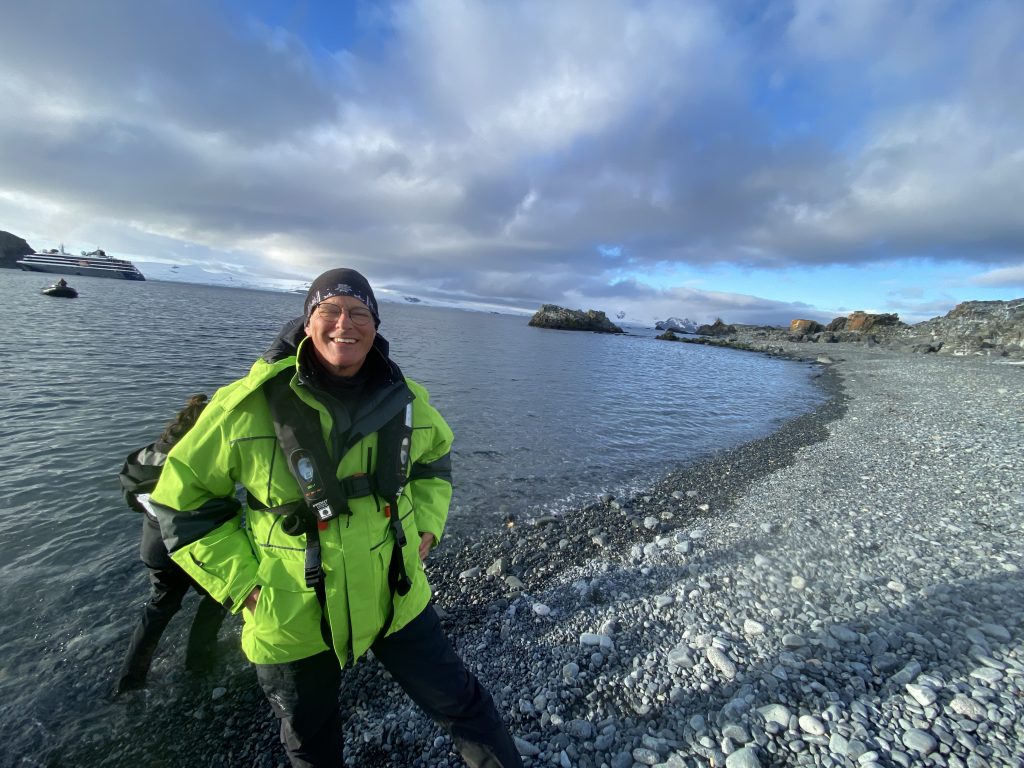 Jetzt ging alles äußerst organisiert vonstatten. Alle Passagiere wurden in sechs Gruppen eingeteilt, wir sind in Gruppe D. Die Gruppen wurden in einem Abstand von 15 Minuten aufgerufen. Dann musste man runter in den Mud-Room gehen, wo unsere Sachen in unserem Schrank hängen, uns anziehen, zum Ausstieg registrieren lassen, durch die Schuhreinigungsanlage gehen und immer 10 Personen in ein Zodiac einsteigen. Äußerst aufregend!