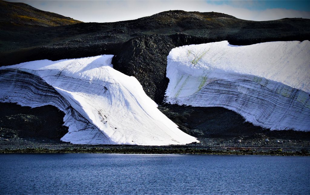 Beim Lunch sahen wir draußen die ersten Eisberge vorbei schwimmen, auch hörte es auf zu schneien und die Sonne kam raus. Wir gingen dann um 14.00 Uhr in der Halfmoon-Bay vor Anker.