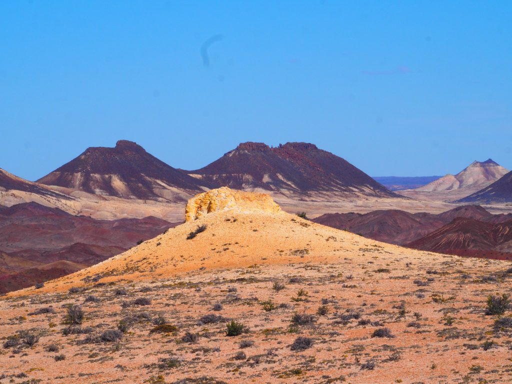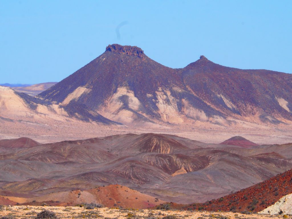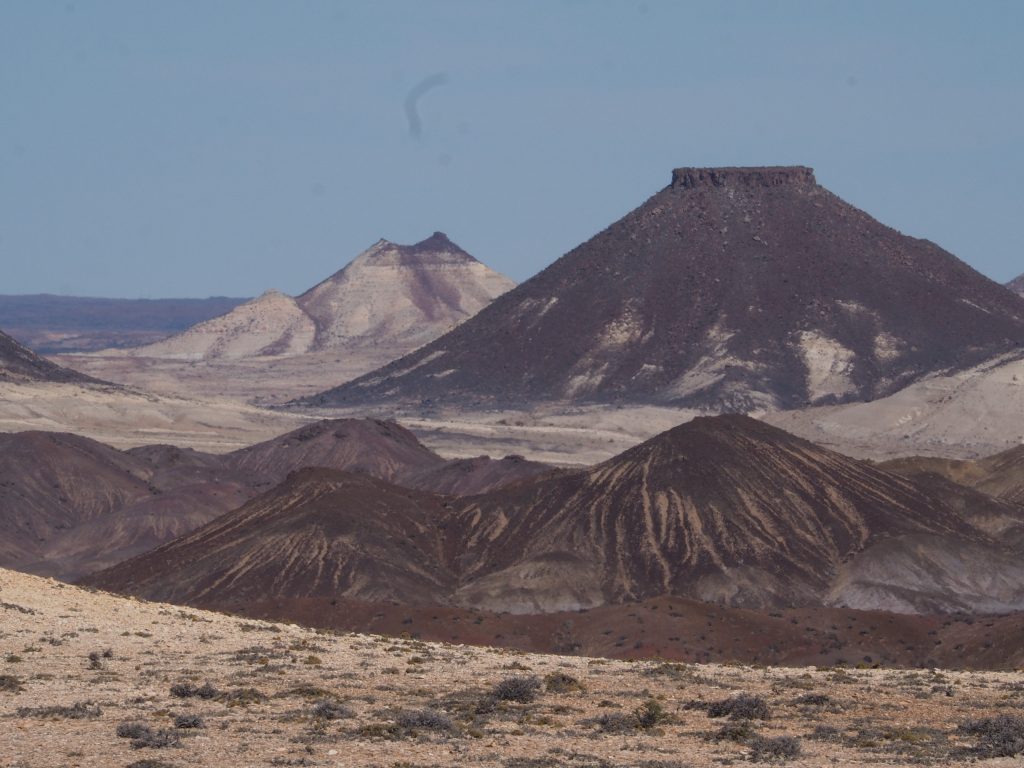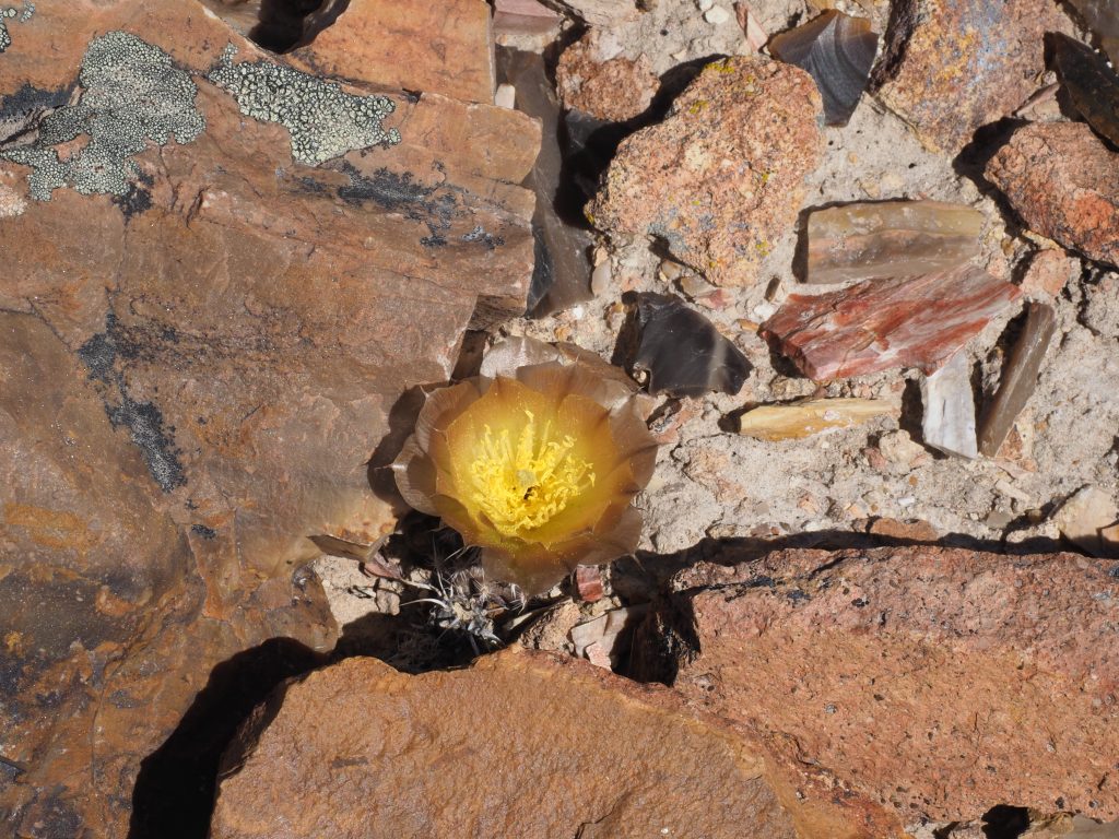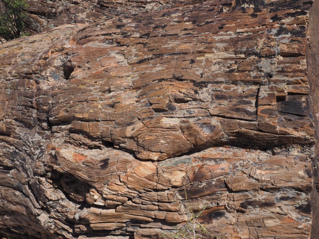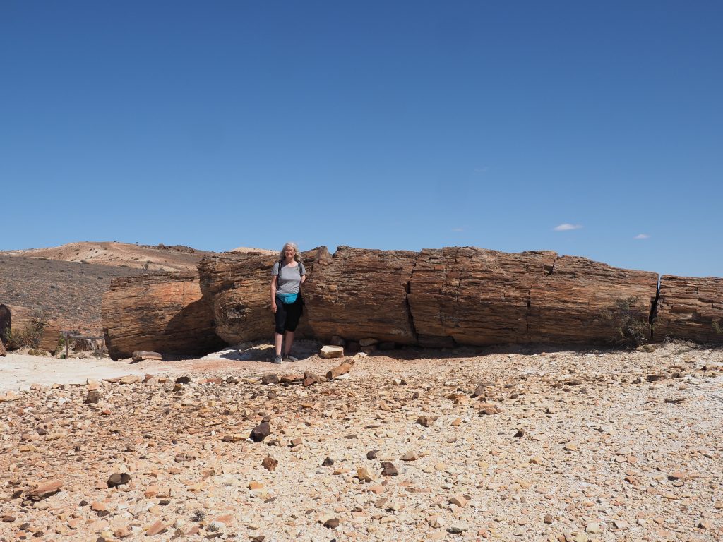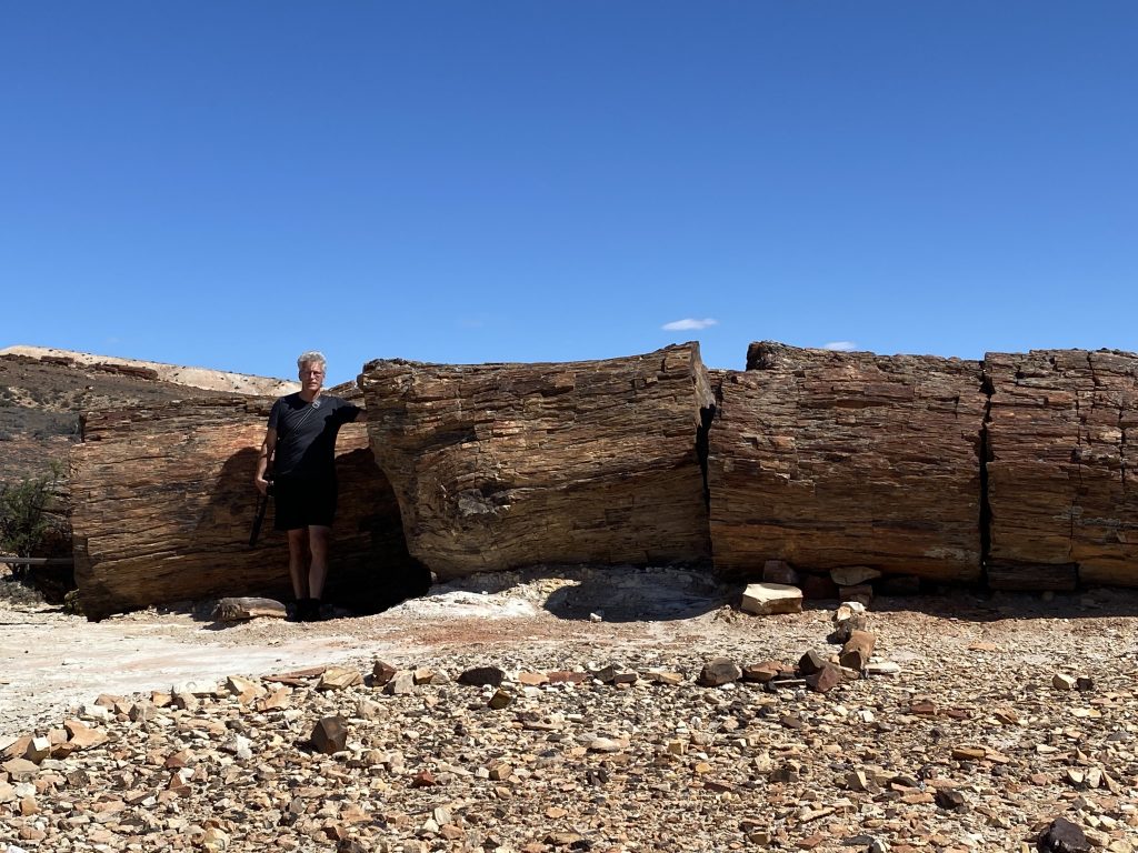 Neben der absolut tollen Wüstenlandschaft mit unendlicher Weite, waren diese Baumstämme total faszinierend. Neben der Vorstellung, dass sich an diesen Bäumen Dinosaurier die Köpfe gekratzt haben, war das Holz absolut noch als solches zu erkennen, nur eben aus Stein. In manchen Teilen dachte man, es lägen – wie im Wald – große Holz- oder Rindenspäne auf dem Boden, aber auch die waren versteinert. Wir waren mal wieder wie fast immer die einzigen Besucher. Es war sehr heiß und nirgendwo gab es auch nur einen Hauch von Schatten. Nach dem zweistündigen Rundweg fuhren wir weiter.
