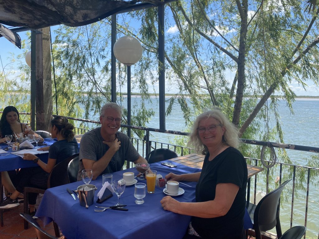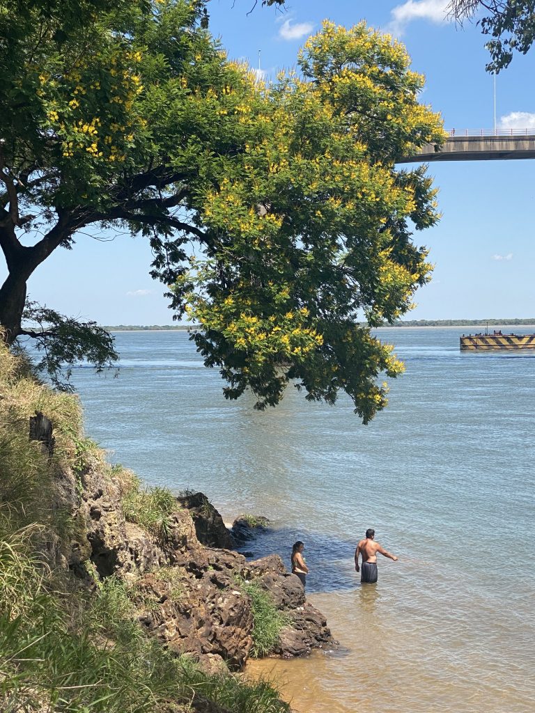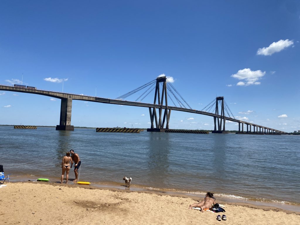 Erstmal hielten wir noch an der Strandpromenade in Corrientes, liefen da ein bisschen herum (aber nur kurz, es ist wirklich unglaublich schwül und heiß) und tranken Kaffee an einem Café am Fluss.