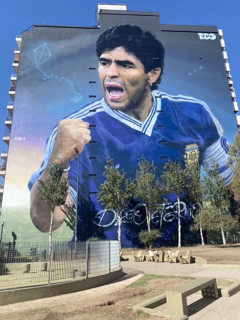 Pünktlich um 10.00 srtartete unser Flugzeug und wir flogen zurück nach Buenos Aires. Dort wurden wir von unserem Vermieter Nacho abegeholt und wieder in unser schönes Airbnb gefahren. Das war richtig wie nach Hause kommen. Auf dem Weg zeigte er uns noch ganz stolz das größte Wandgemälde von Maradonna (knapp ein Jahr alt, direkt neben einem 40 Jahre Malvinas Memorial) außerdem kamen wir wieder am Gelände des argentnischen Fußballverbandes vorbei, wobei Nacho erzählte, dass (wegen Länderspiels) Messi gerade da sei, der Polizeiauftrieb vor dem Gelände war unglaublich (als würde hier irgendwer Messi etwas tun wollen).