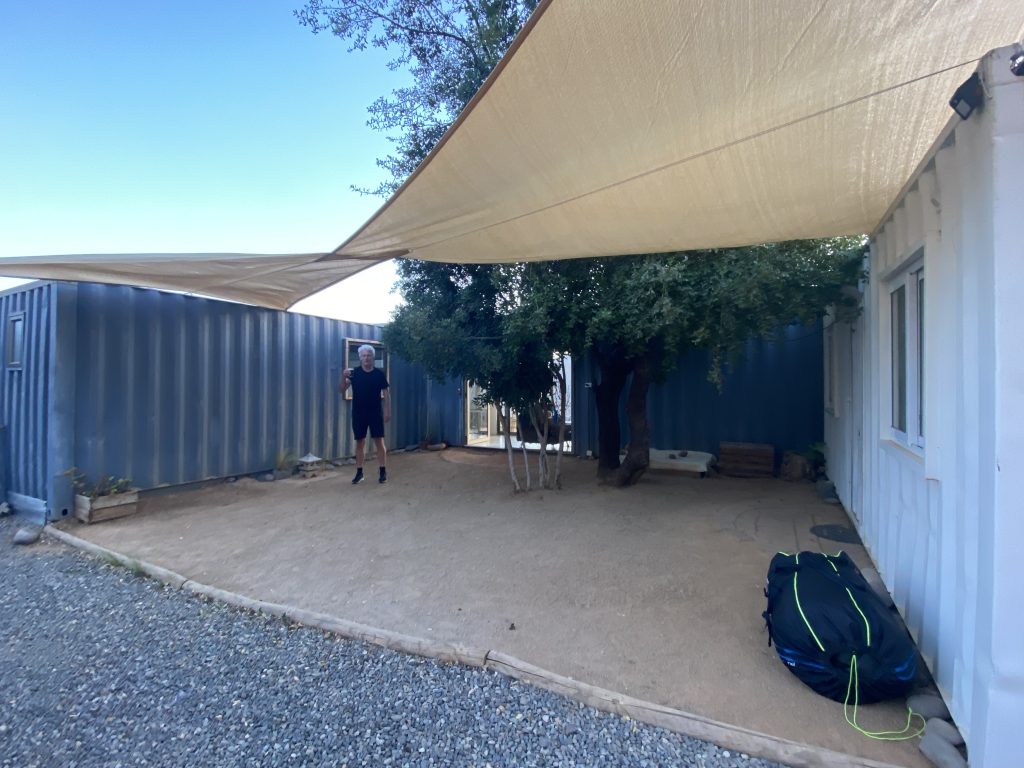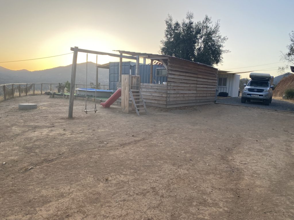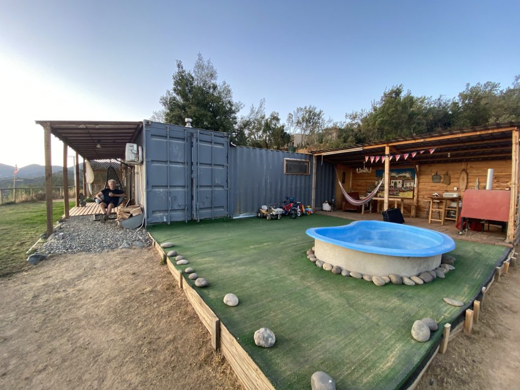 Um 20.00 Uhr kamen wir an und wurden unten im Dorf von den Schwiegereltern der Vermieterin, Eugenio und Reina, in Empfang genommen. Sie fuhren vor uns her einen äußerst steilen Berg hinauf, den Chingi gerade so schaffte. Oben waren wir echt überwältigt. Das ein Hektar große Grundstück liegt oben am Berg mit einem phantastischem Blick über das ganze Tal. Eugenio und Reina leben hier mit ihren vier Hunden und Hühnern in einem Holzhaus. Weiter unten ist unsere Unterkunft, in der normalerweise unsere Vermieterin Rosa mit Mann und Kind wohnt. Sie ist aber zur Zeit auf Reisen in Mittelamerika. Unser Haus besteht aus drei Schiffscontainern, die wie ein Dreiseithof zueinander aufgestellt und verbunden sind. Dazu gibt es noch zwei überdachte Terrassen mit Hängestuhl und Hängematten. Superschön! Und dazu noch schnelles WLan und eine Waschmaschine! Wir genossen noch mit einem Absackerbier und einem Abendessen den Sonnenuntergang.