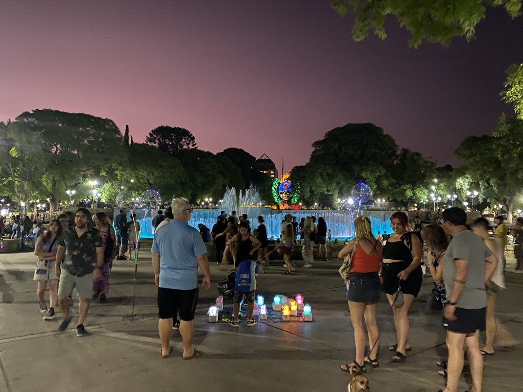 Danach tranken wir noch am (auch natürlich künstlich angelegtem) See im Park einen leckeren Smoothie bevor wie in die Stadt fuhren, um in der Fußgängerzone noch etwas vom Nightlife von Mendoza zu erleben. Unglaublich was da los ist! Auch nachts um 23.00 Uhr waren immer noch 29 Grad (draußen, im Dachzelt natürlich etwas mehr…).