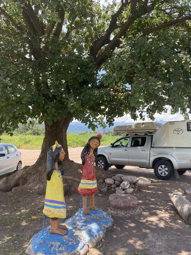 Einschub: Insgesamt sind wir weiter sehr glücklich und zufrieden mit unserer Reise, die positiven Erfahrungen überwiegen bei Weitem, und die negativen fallen eigentlich hauptsächlich unter die Kategorie „interessante Erfahrung“. Bis jezt fühlen wir uns trotzdem als echte Glückskinder. Über unsere Overlander-Chatgruppen bekommen wir genug mit, was einem so alles passieren kann: in der Salzwüste mit dem Auto einbrechen und tagelang auf Rettung warten – gerade da scheinen wir rechtzeitig vor dem Regen durchgekommen zu sein, nach uns ist ein Franzose im Salzsee eingebrochen, so dass man derzeit gar nicht mehr ohne Guide auf den Salar darf-, wochen-bis monatelang auf Ersatzteile fürs Auto warten (da haben wir mit unserem Chingi Glück, da die Toyotas hier weit verbreitet sind), bei Straßenprotesten in Bolivien Macheten ins Auto gehalten zu bekommen, aus Peru nicht mehr ausreisen zu können, da alle Grenzstellen für den Ausreisestempel geschlossen haben, vom Sturm herausgebroche Scheiben usw. usf.. Aktuell hängt gerade ein Pärchen fest, das irgenein Nadellager benötigt, dass es in ganz Südamerika nicht gibt; der deutsche Händler hat es zwar auf Lager, darf es aber wegen der Zollbeartiimmungen nicht verschicken. Die beiden suchen also jetzt jemanden in Deutschland, der das Lager kauft und mit dem Flugzeuggepäck mit nach Argentinien bringt, sonst können sie nicht weiterfahren….Auch wenn man gerade sieht, was bei den Bränden in Chile los ist, sind wir doch sehr froh, dort vorher unproblematisch durchgekommen zu sein. Das einzig wirklich Doofe sind Steffens Bein-/Hüftprobleme, aber darauf haben wir uns inzwischen auch gut eingestellt, größere Wanderungen kommen bei den Temparaturen gerade ohnehin nicht in Betracht und kleinere bis mittlere Strecken klappen ganz gut.