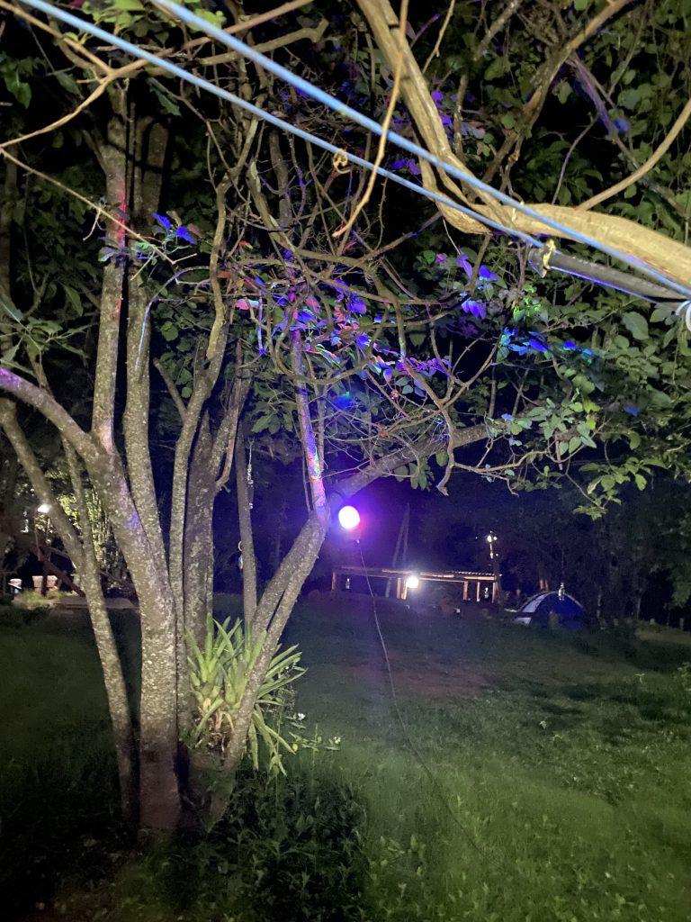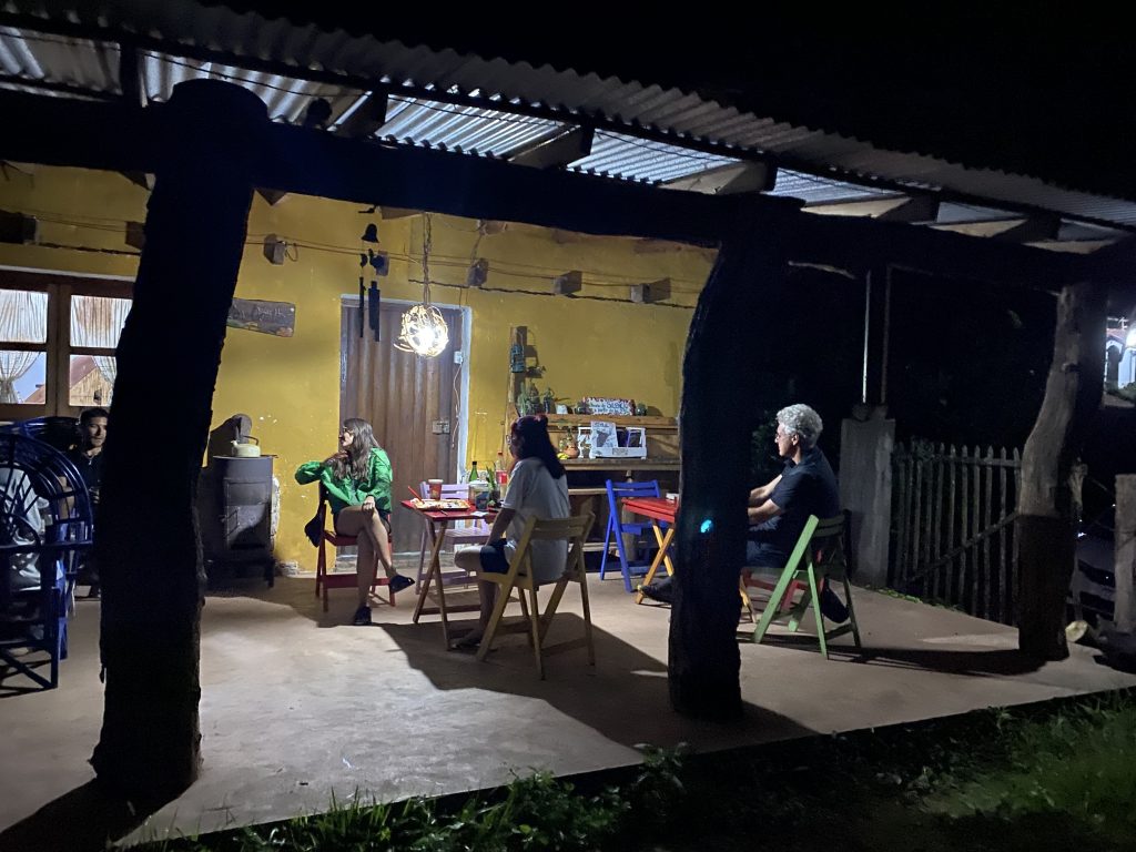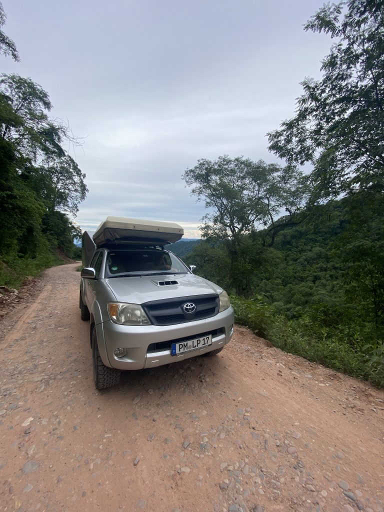 Allerdings entschieden wir uns, nicht, wie ursprünglich geplant, im Park selbst zu campen, sondern ins 25 km weiter entfernte und deutlich höher gelegene San Francisco zu fahren. Für diese 25 km benötigten wir allerdings 1 ½ Stunden, da es auf einer abenteuerlichen Straße durch den Dschungel über 1000 m aufwärts ging. Dafür wurde die Temperatur deutlich besser, so dass da auch keine Mosquitos mehr waren. In San Francisco sollte es einen Campingplatz geben, den wir aber erstmal nicht fanden. Zum Glück trafen wir dann eine Familie, die uns mit zum Campingplatz „Las Ocultas“ nahm. Dort war es total nett. Wir konnten zwar nicht auf den Platz fahren, da er nur für Zelte war, durften aber davor (direkt neben einem Friedhof) stehen. Die nette Besitzerin brachte uns erstmal ein selbstgebrautes Bier und backte dann für uns eine Pizza. Überall waren gemütliche Sitzgelegenheiten und eine super freundliche Stimmung.